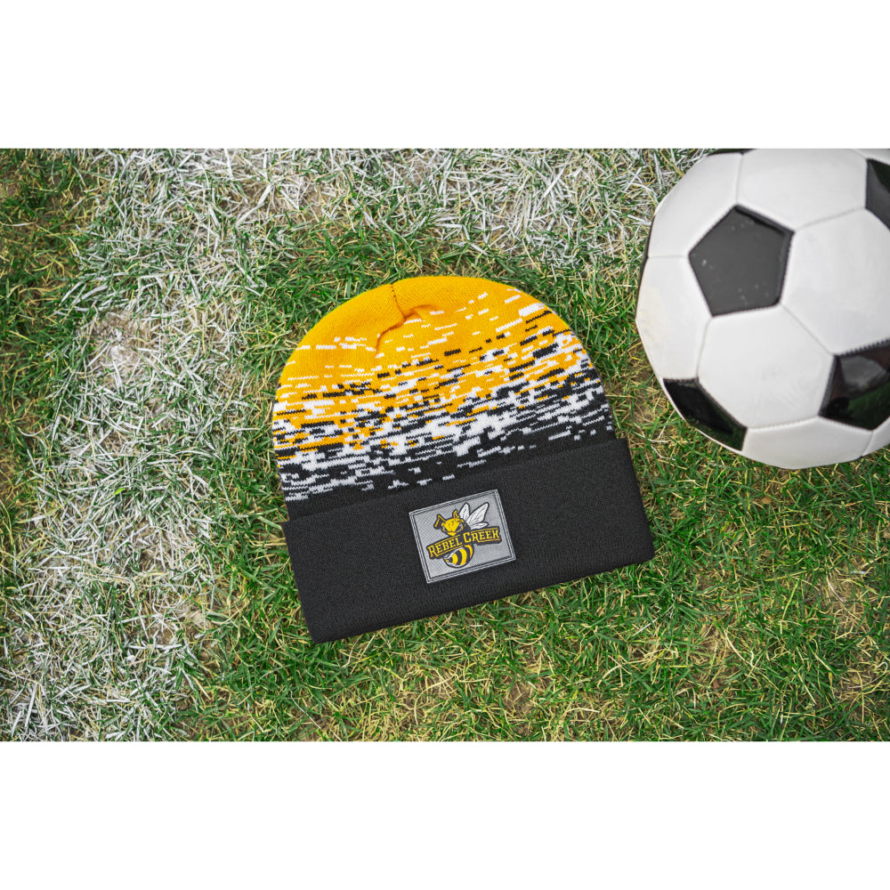 Think of a high school selling hats with their mascot, promoting school spirit and unity among students.