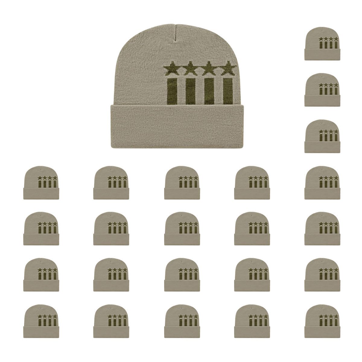 Show your patriotic spirit with this acrylic/nylon/spandex knit cap with solid color cuff. The crown features four stars and vertical stripes, creating a bold and distinctive design. A portion of the proceeds from this product is donated to Camp Hope, a retreat for wounded veterans.