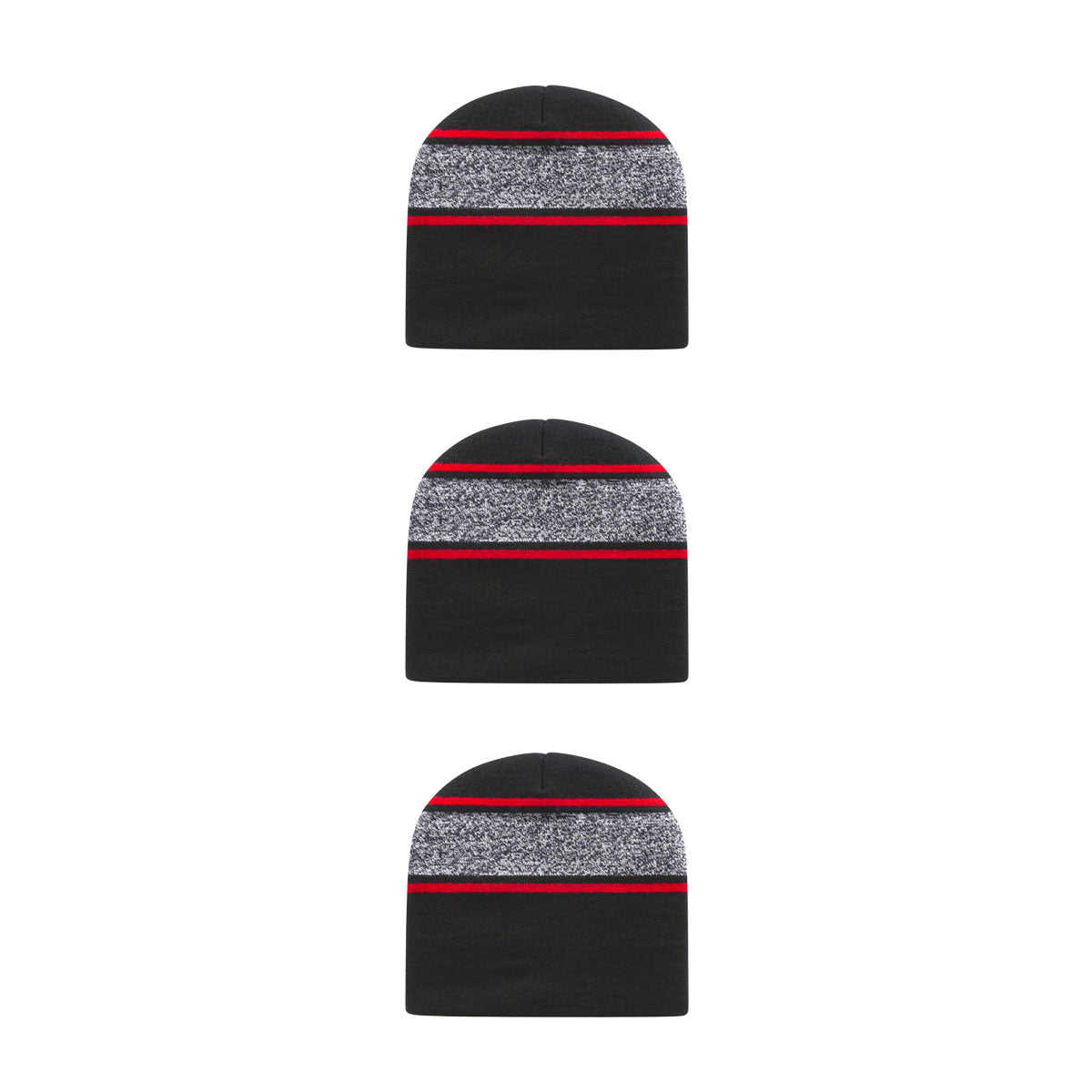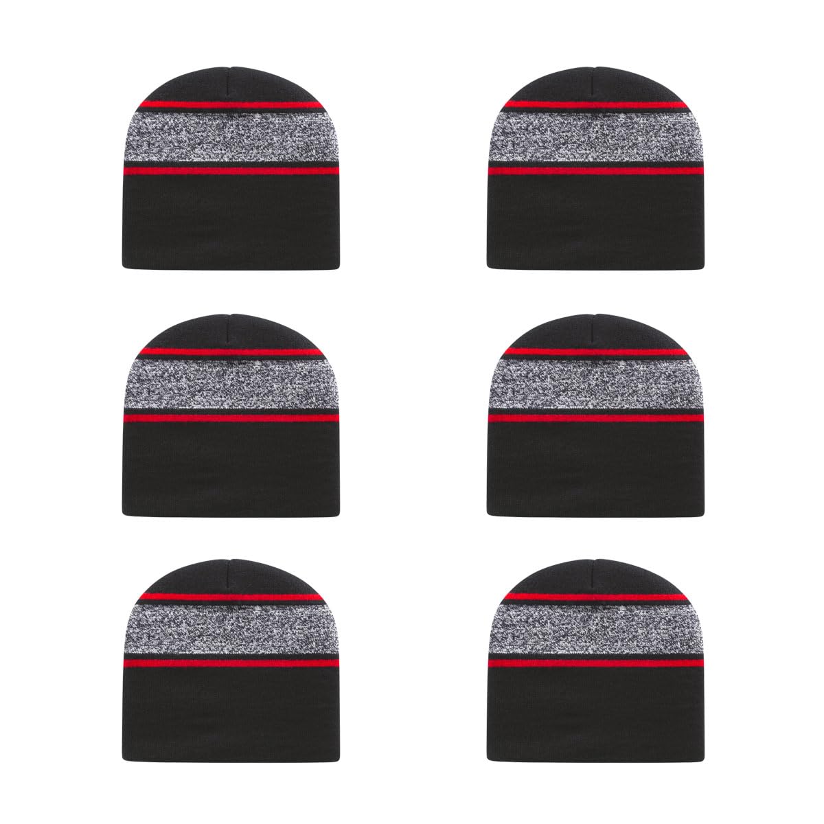 Stay warm with style in this acrylic/nylon/spandex blend knit beanie. Crafted with black & white variegated yarn and accented with contrasting stripes, this beanie combines comfort with a modern, eye-catching design.