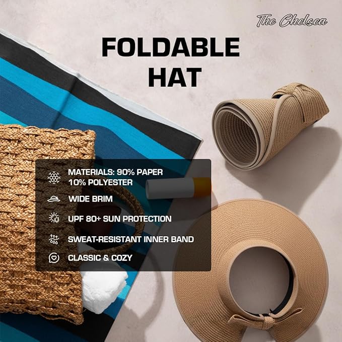Chelsea Sun Hat for Women — Wide Brim Straw Visor with Ponytail Hole (UPF 80+)