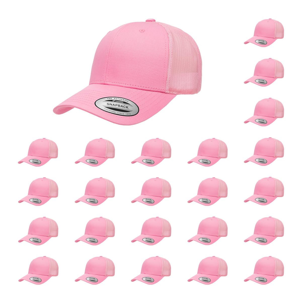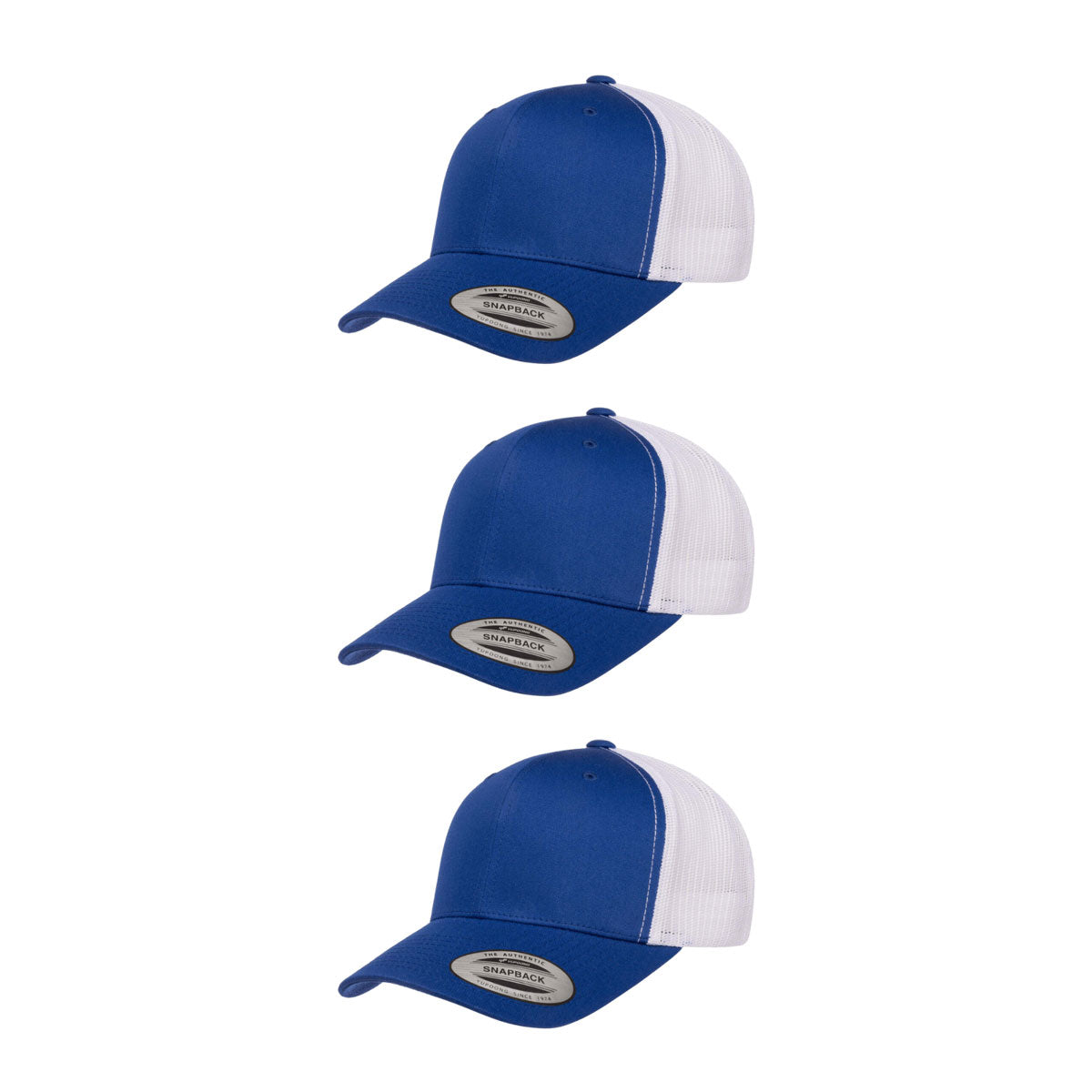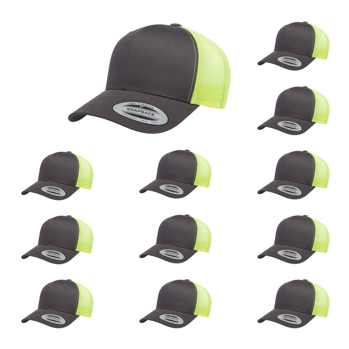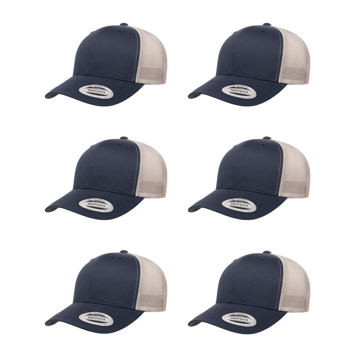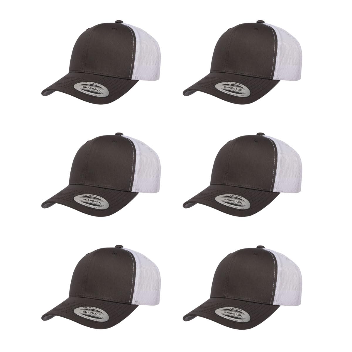 The Yupoong Two Tone Trucker Cap represents what The Hat Pros are all about: versatility and excellent quality. Great for embroidery. 6-panel cap with buckram front lining, and classic mesh back-quilted comfort sweatband. 3½" crown, and 8 rows of stitching on visor. Matching under-visor, with matching plastic adjustable strap.